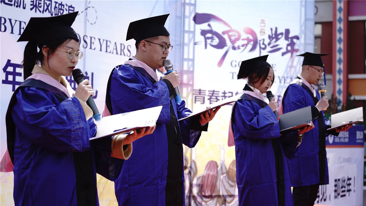作为和学生们较亲近的人,班主任自然是毕业典礼上不可或缺的一部分。山西新华心语协会负责人杨老师作为班主任代表为学生们送上祝福。他说,从今天开始,你们将真正成人,独自面对人生的挑战,社会的考验。我们不能期望现实社会可以为你们量身定制,我们只能笑对人生。不管未来遇到什么样的磕磕绊绊,都不要被世俗裹挟,我们可以适应社会,但希望你们永远留一点纯真与青春的活力在心底,不被生活磨灭,不被偏见打消。