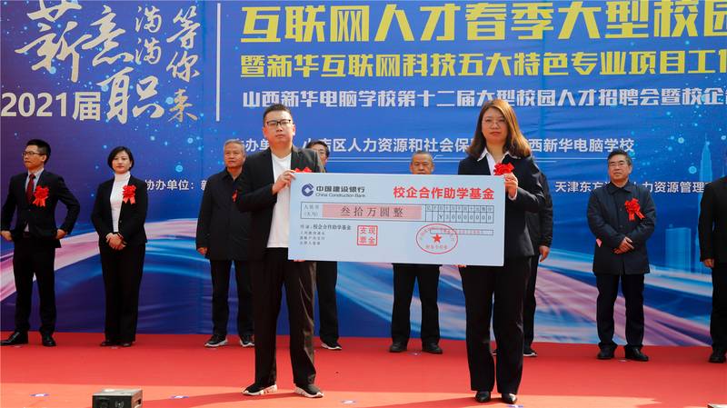 由于山西新华电脑学校高技能人才培养的模式,现涌现出一批出色企业将与山西新华进行合作,为山西新华毕业学子提供更多优质岗位,经过双方长时间考察和商议,与天津东方海汇人力资源管理有限公司、山西云客跨境网络科技有限公司、山西启天华瑞文化传媒有限公司达成人才培养合作意向,签订校企合作协议,在山西新华设立电子商务与智能财会、360网络安全与人工智能开发工程师、电子竞技新媒体运营师等十余个专业的校企对接班,校企携手定向培养高素质、高技能的应用型人才。为了更好使校企合作培养计划得到落实,山西启天华瑞文化传媒有限公司总经理马英智为山西新华赠与校企合作助学金30万元。