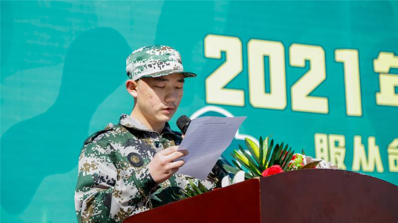 参训学生代表也带领全体新生宣誓,他们将为自己,为家人,为梦想,不畏骄阳的考验,不惧风雨的洗礼,做能吃苦、能耐劳的“军人”。在军训的时光中做到战胜自我,团结一心,勇往直前。