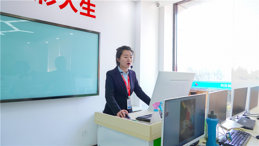同学们开启了新华互联网课堂体验之旅。在VR智能家居实训基地,专业导师案例讲解装修设计,同学们上机操作设计图,系统了解设计师日常工作;在电子商务实训基地,同学们争先恐后体验直播,过过网红瘾的同时更深入了解电子商务行业;PS公开课上,导师讲解PS课程知识,辅导学生使用PS软件制作海报、样机模型等。