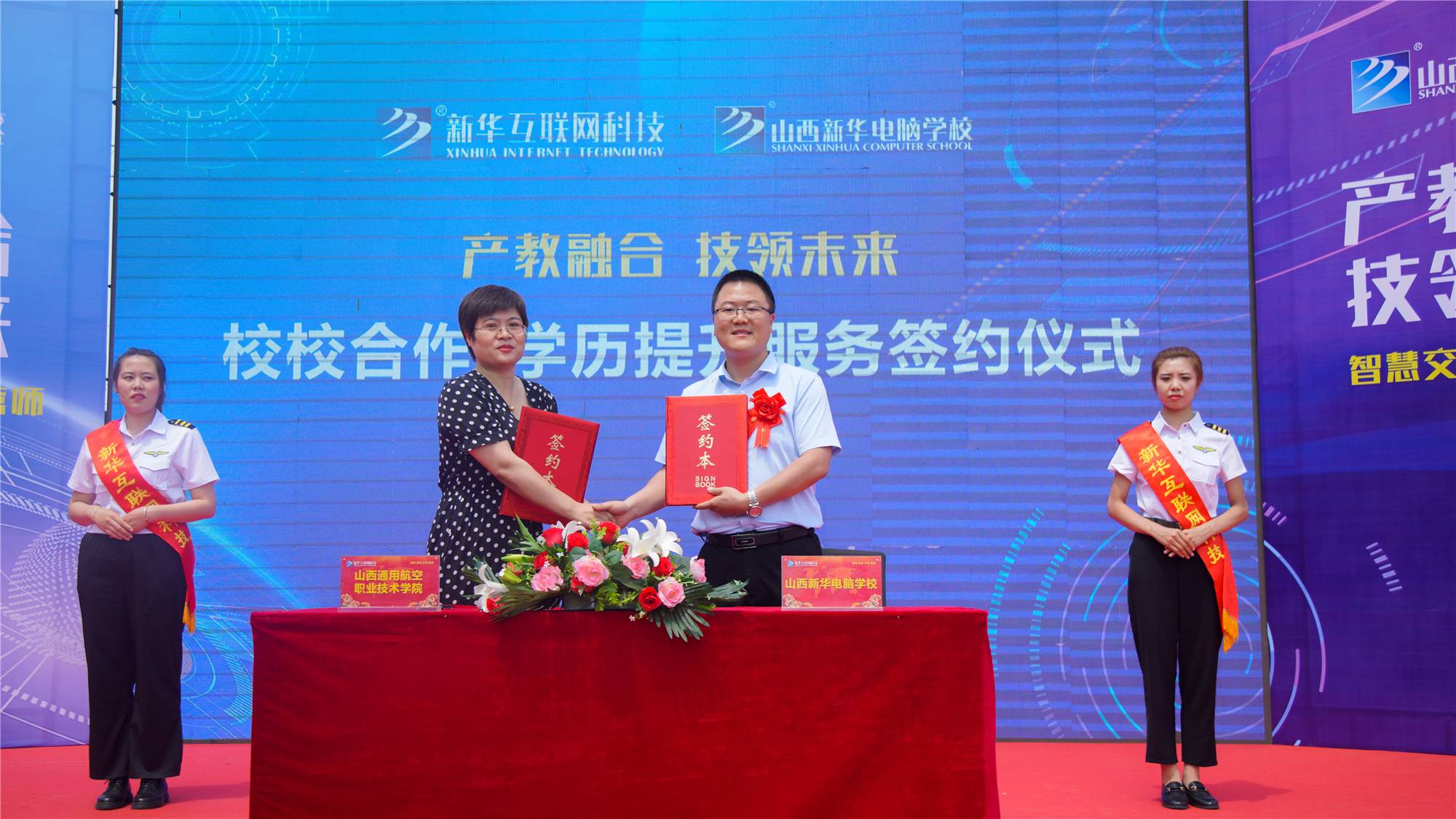 为充分发挥中等+高等职业教育人才培养的优势,以提升专业人才培养质量为根本,共同开展中等和专科层次职业教育人才培养衔接改革,探索衔接专业在分段人才培养目标定位、课程结构体系,教学内容、教学模式及评价模式等的系统设计与实践,在产教融合、校际合作、联合教研、资源共享等中高职衔接机制方面开展研究与探索,共同提高专业办学实力,实现优势互补、共同发展,促进区域现代职业教育体系的构建,更好适应区域经济社会发展需要,山西新华电脑学校设立了“无人机应用技术、通用航空服务技术、空中乘务”等定向升学班,就“3+3”中高职分段教育等人才培养计划与山西通用航空职业技术学院达成长期合作,共同培养符合区域发展需求的高技能人才。