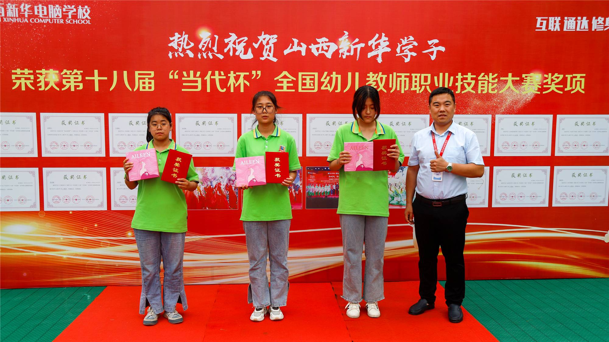 近日,从第十八届“当代杯”全国幼儿教师职业技能大赛上传来喜讯,经过层层筛选,山西新华电脑学校选送的参赛作品获得佳绩,其中孙美慧,张琳苏,吕晓敏3位同学获一等奖、李宇芳、孙亚楠、李琳等13位同学获二等奖、冯瑶,胡安娜等2位同学获三等奖、康雨科,刘宇月,郑婷月等4位同学获出色奖,张雅茹老师荣获活动方案三等奖,山西新华电脑学校荣获“先进单位”称号。