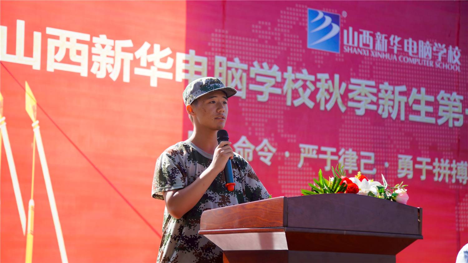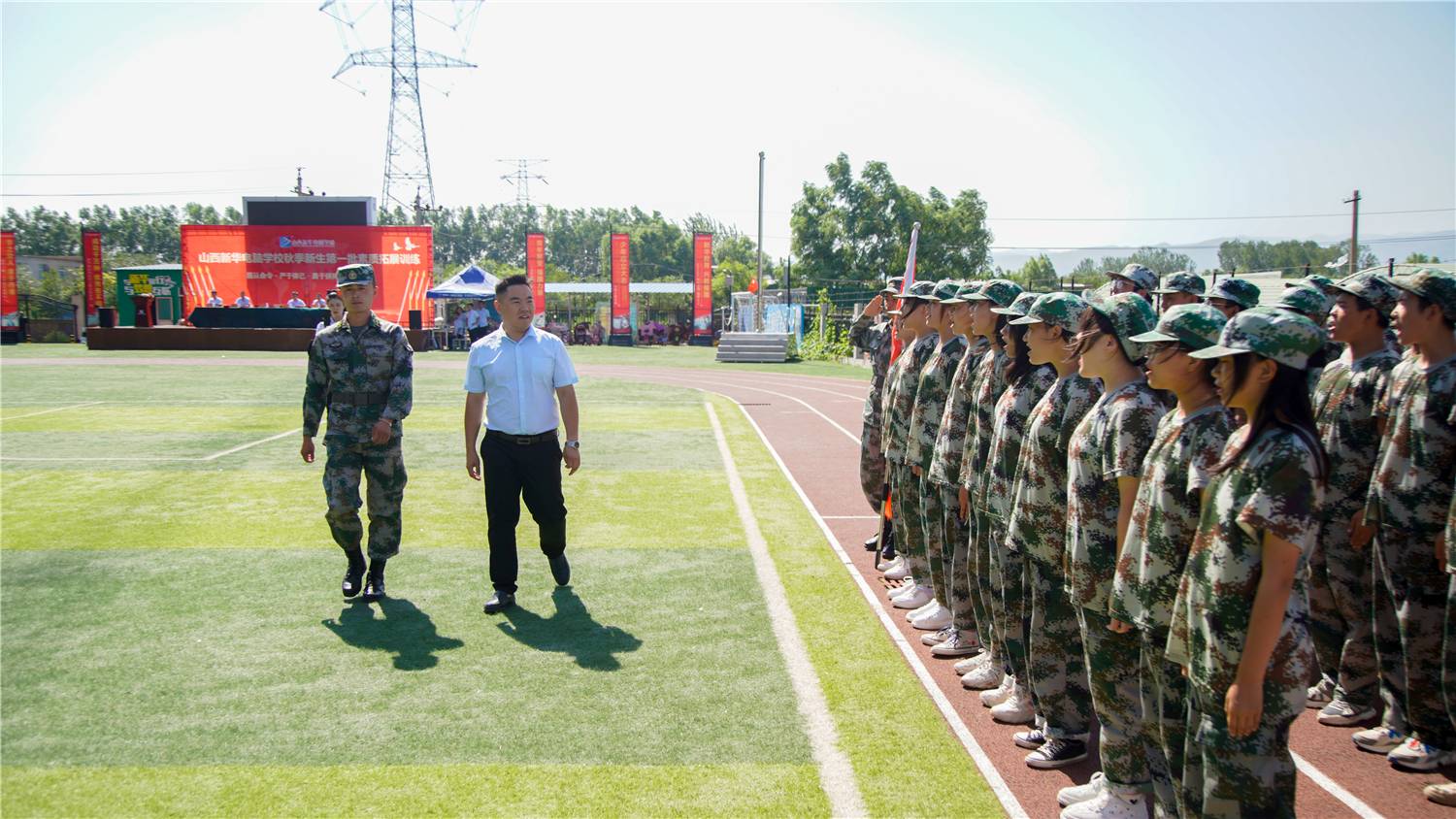 山西新华电脑学校2021级秋季首批新生军事素质拓展训练成果汇报暨总结表彰大会正式开始。军训汇报表演在庄严的国歌声中拉开了序幕,校区主任朱主任在教官的陪同下对全体受训新生进行了检阅。同学们用铿锵有力的声音表达着他们的壮志豪情。