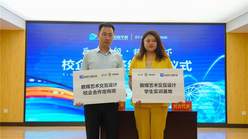 为深化校企合作培养模式,打造可持续发展的校园人才链,充分发挥企业与学校的双方优势为社会及企业服务的功能,更好的为社会、为企业培养高素质、高技能的应用型复合型人才,同时也为学生实习、实训、就业提供更多空间,在双方共同努力下,山西智创嘉品科技发展有限公司和山西新华电脑学校共同签署了校企合作协议,同时进行了 “数媒艺术交互设计学生实训基地”和“数媒艺术交互设计校企对接班”的授牌仪式。