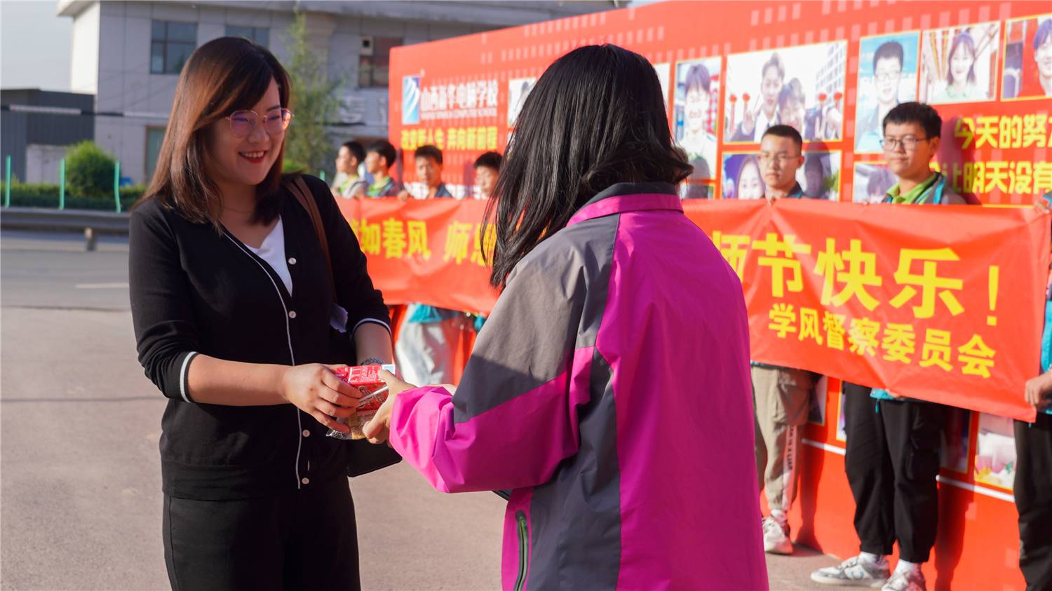 在过去的日子里,山西新华的教职工们用自己高度的责任心和敬业情操,在自己平凡的岗位上挥洒着辛劳和汗水,用骄人的成绩谱写学校发展新的篇章。阳光下,用你灿烂的笑脸享受工作和生活,因为你们优雅的风采、幸福的姿态真是学校可贵的教育资源。愿所有的新华教职工们都活成自己喜欢的模样,然后惊艳了时光,温柔了岁月,祝你们节日快乐!王家贤校长和王助理把节日的礼物送到每一位老师的手中。