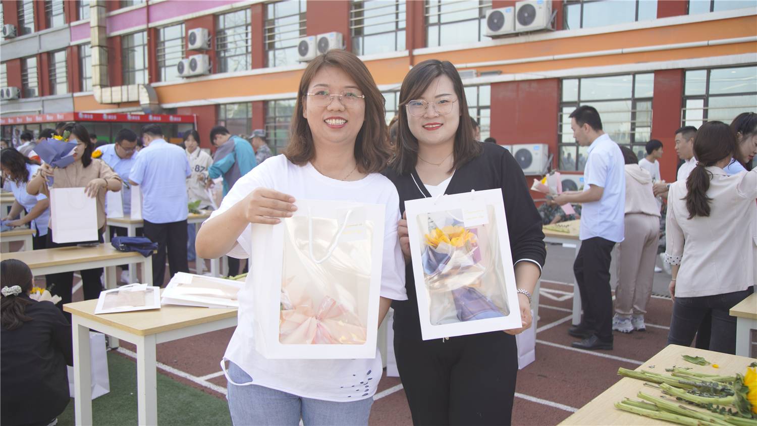 不仅仅是学生,校领导们也对教师们送上了祝福。活动由学校精心准备的花艺培训活动来开帷幕。伴随着优雅的乐声,老师们在花艺老师的指导下将脑中的灵感与职业幸福融入花束。不多时,一束束、一篮篮独具匠心的花艺作品生机盎然,美丽摇曳!“万紫千红”中,赏春色,嗅花香,大家更是笑靥如花,幸福如花……