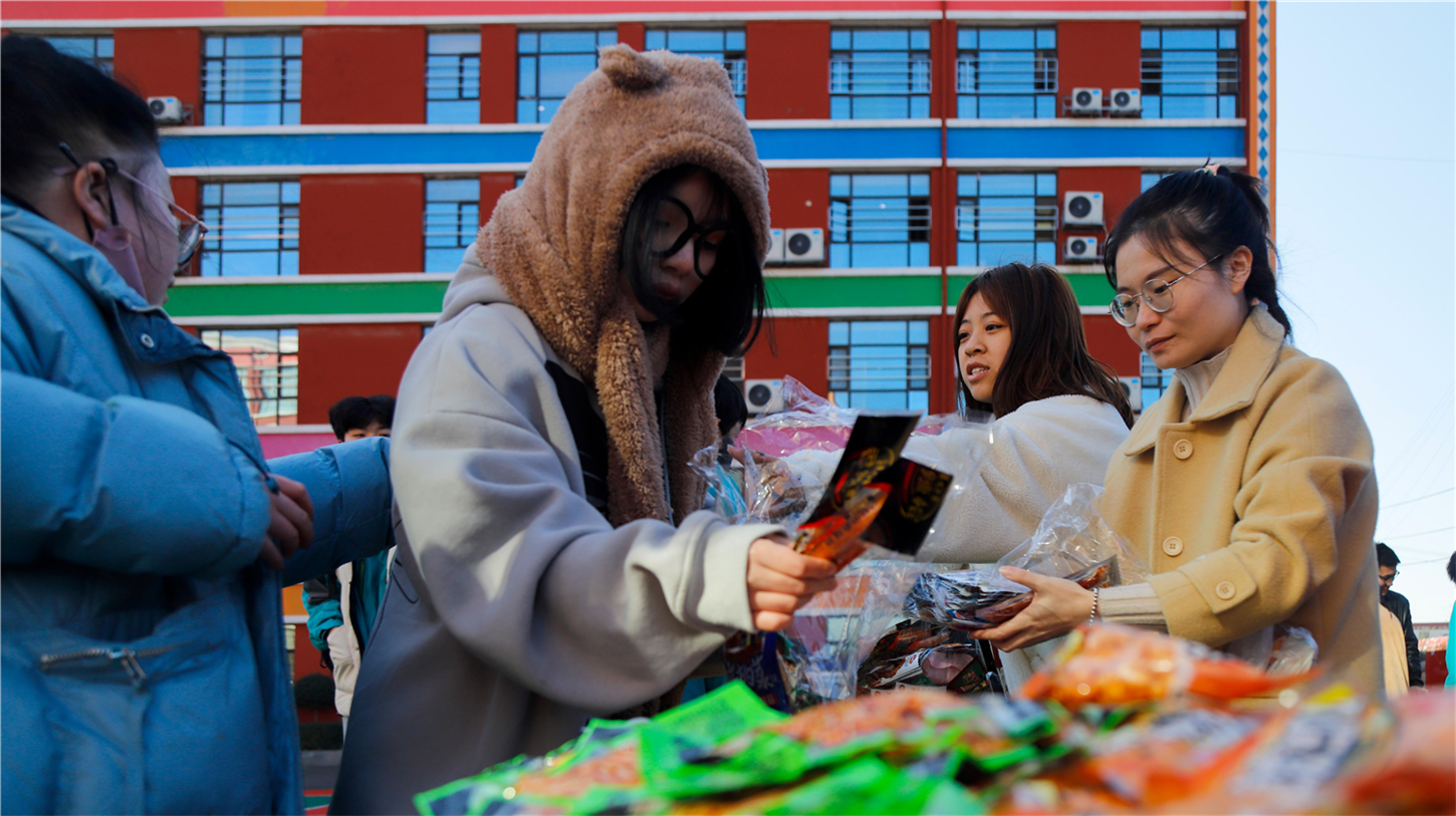 电商学子在教学楼前操场上摆摊设点,购物节售卖的商品都是同学们自己联系的货源,根据本次售卖针对的人群精心选择能够实现大卖的商品,或来自校外赞助、或从网上批发,充满童年记忆的小零食、健康绿色的家乡土特产、自印的文创T恤……琳琅满目的商品看得人眼花缭乱,让现场的同学老师们忍不住“剁手”,有的摊位前甚至排起了长队,昔日安静的操场变成了热闹的“买卖街”,现场气氛异常火爆。