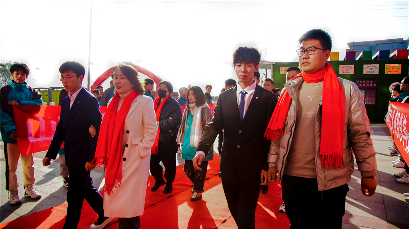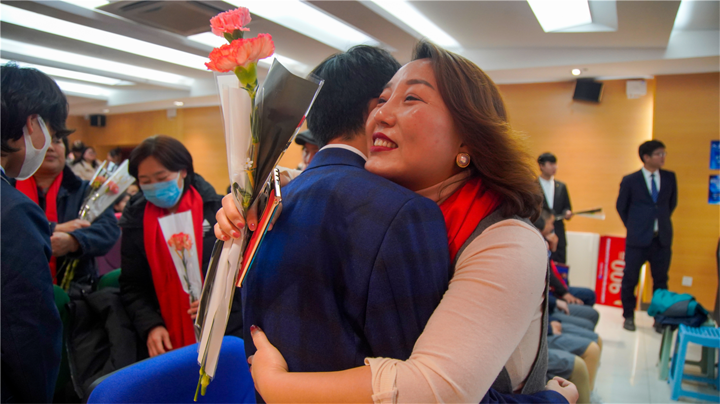 当孩子们和家长携手走上红毯的那一刻,父母的腰杆更挺拔,孩子的笑容更灿烂,星落凡尘,斑白双鬓;碧水荡漾,蹉跎青春。几丈宽的红毯是荣耀大道,更是孩子们和父母享受陪伴的较好时刻。孩子给父母鲜上鲜花,父母的脸上洋溢着幸福和快乐,也开启属于他们的鉴证时刻!同学们无比幸福的牵起家长的手走过红毯走向幸福的彼岸!
