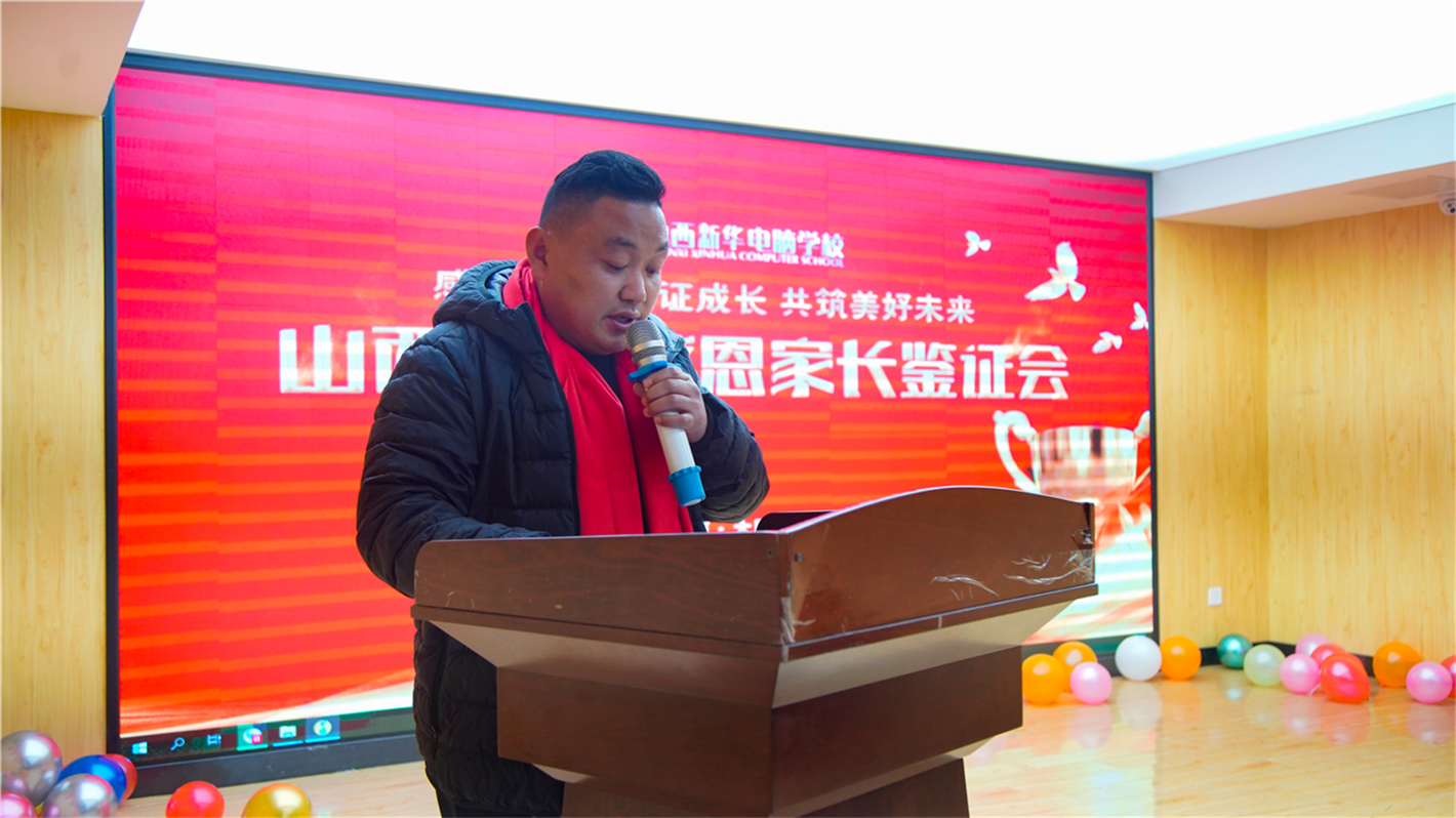 活动较后,山西新华电脑学校校长助理王助理为本次感恩家长鉴证会做感恩献礼。表达了对学生的关心与爱,同时承诺学校全体教职员工时刻秉承“团结、务实、开拓、奉献”的新华企业精神,牢记“爱与责任”的教育根本,励精图治,以学生为本,关爱学生成长,严把教学质量关,注重教学过程管控、学风建设和人才培养,为社会培养德才兼备的互联网出色人才。选择一所好学校,成就一个好未来!请家长放心把孩子交给我们,我们定不负众望!