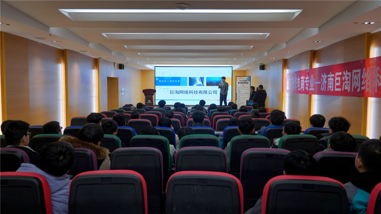 2月14日,招聘会在山西新华电脑学校多媒体报告厅举行,早早的就有来排队入场的学生。在持续3个多小时的招聘会中,郭紫阳向在场的学弟学妹们介绍了目前电商行业的发展趋势和前景,同时也介绍了山东巨淘网络科技有限公司的发展历史、公司的发展情况以及待遇标准。为了更好的让学子对公司的了解,郭紫阳特别的向同学们详细介绍了本次招聘所提供的岗位以及岗位需求,更全面地解释了电子商务相关岗位的发展前途。