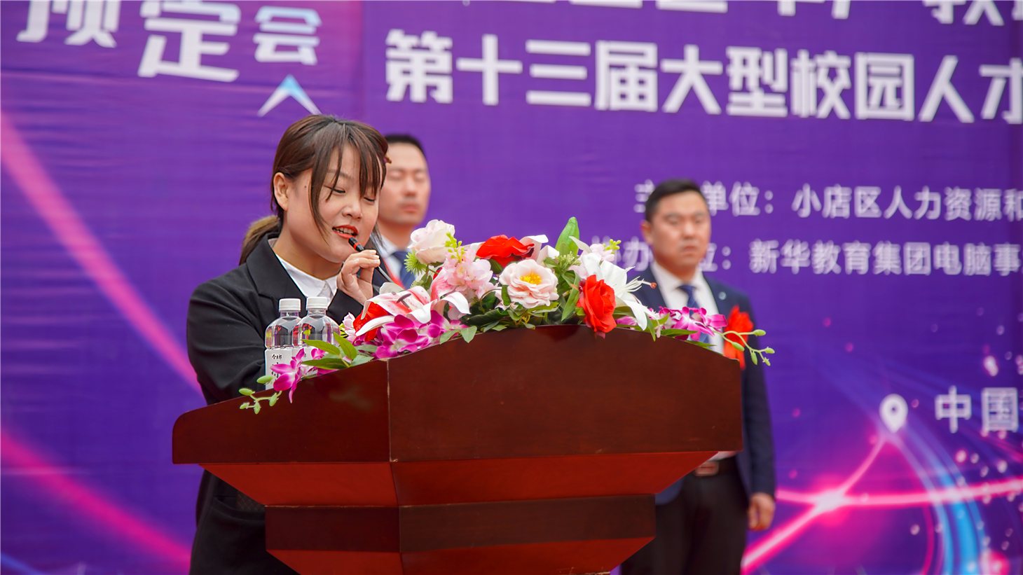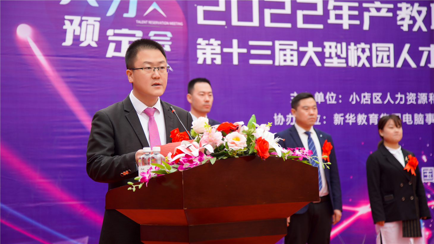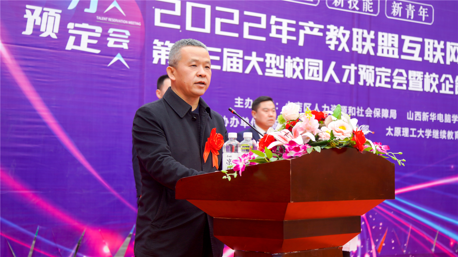 随后,太原市小店区人力资源和社会保障局尚红宝局长发表重要讲话。他表示,近年来,国家高度重视职业教育,发展职业教育,职业教育前途广阔、大有可为。此次山西新华电脑学校的大型互联网人才预定会,为企业和优异学子搭建了桥梁和纽带,学校将为企业培养更多高素质、高技能的应用型人才,企业也将为学子们提供更好的就业平台和更多的就业岗位,各方共同营造高质量就业及创业的良好氛围,真正实现了“职业教育就是就业教育”的办学理念。尚局长祝愿每一位毕业学子都能找到适合自己的岗位,在时代大潮中扬帆奋进,成长为新时代的精英。