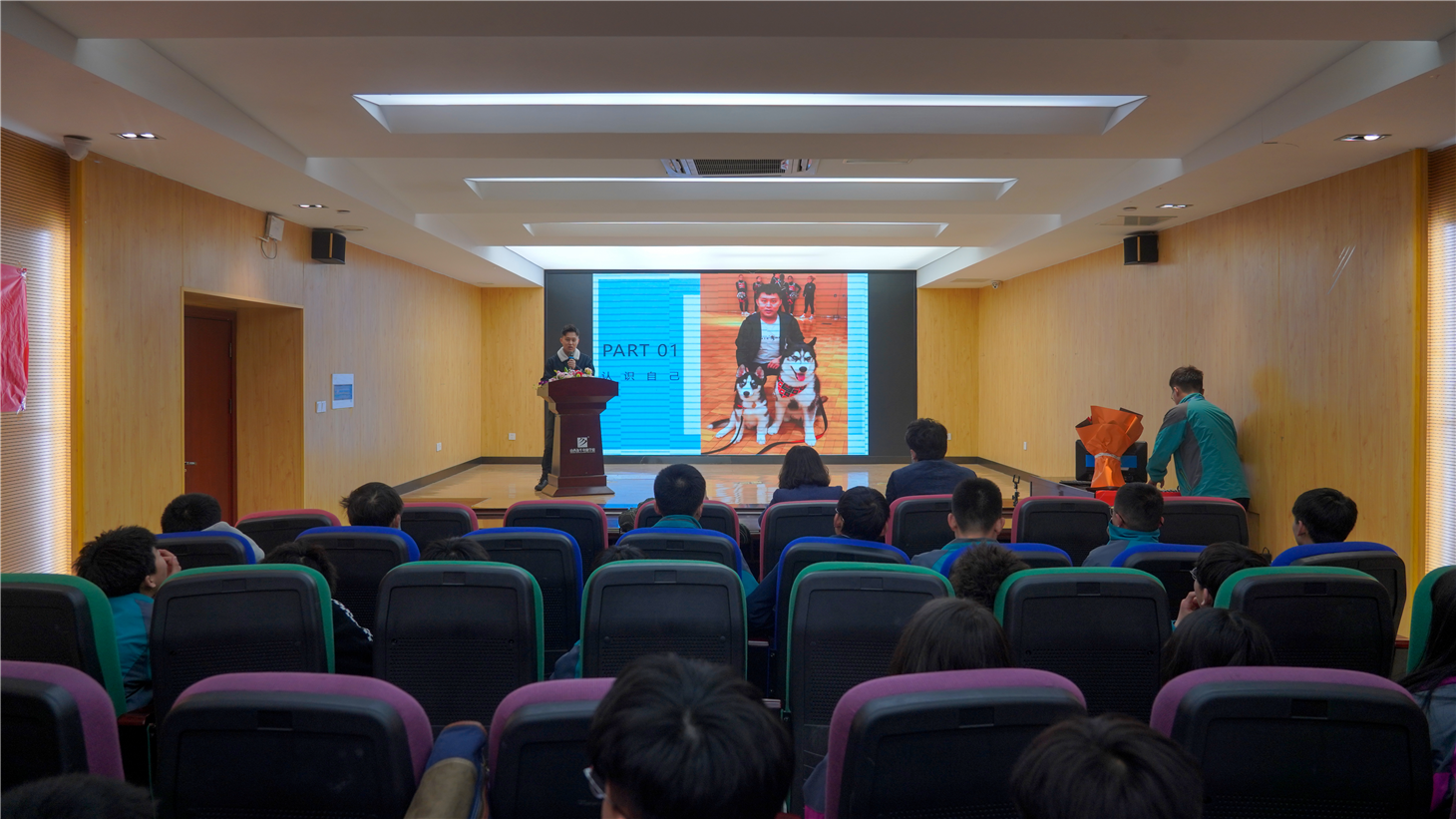 王老师从“认识自己”、“寻找方向”、“坚持信念”、“迎接机遇”、“永不言弃”等多个方面,结合自身经历为同学们详细讲解了个人努力对自己未来的影响。演讲现场氛围十分活跃,掌声如雷、此起彼伏。王老师的演讲十分幽默风趣,在演讲的过程中他还穿插了“蝴蝶效应”等小游戏。幽默的演讲配合趣味十足的小游戏点燃了同学们的热情,在现场听讲座的同学们踊跃参与游戏,积极与王老师互动。