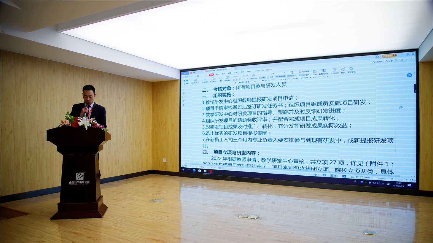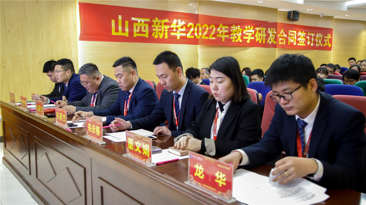 2022年是学校各项发展的关键之年,也是教学质量及综合管理能力提升的关键之年。“逆水行舟,不进则退”,学校教师们始终牢记教学质量是学校生存之本,是学校的生命线。在庄严的国歌声之后,山西新华教学研发中心负责人龙老师做了2022年教学研发工作介绍,教务主管宣读了教学研发考核细则,参与研发的老师与教务负责人进行一一签约,研发教师代表进行了相关发言。