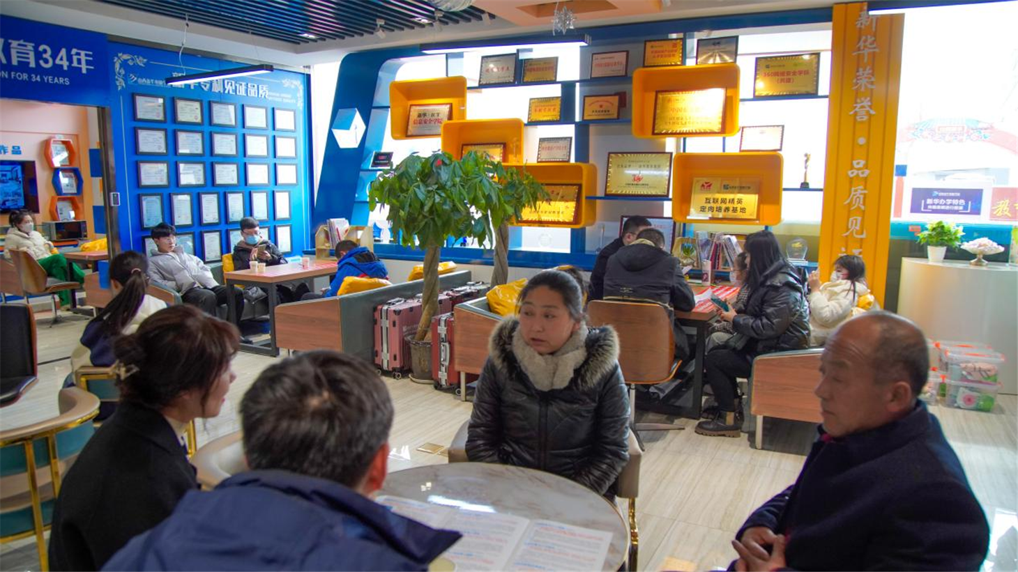 由于每天咨询报名的同学很多,我校采用预约到校报名的方式,提前预约好的同学早早就在父母的陪同下来到学校等待。早上8:00学校的咨询报名中心,小编刚到,就看到这里非常地热闹,已经有很多家长在等候了。据了解,有一位来自大同的父亲早上不到6点就开车带着自己的孩子过来报名,排了初次号。咨询中心每一个时段都挤满了前来咨询报名的同学们!
