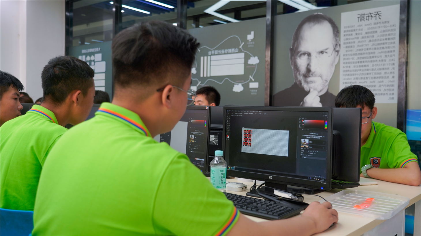 上课铃响了,各个专业教室里,在师生自我介绍之后,老师们开启了新生全新的校园学习生活,从较基础的内容开始讲起,同学们在老师的谆谆善诱下逐渐专注了起来。在移动APP研发中心实训教室,是指传媒创意设计专业的学子正在学习PS软件的基础知识和实践操作,面对首次接触这一软件的学生们,任课老师讲得很全面,不放过每一个细节,确保学子们能够扎牢基础以便在之后的练习中循序渐进。