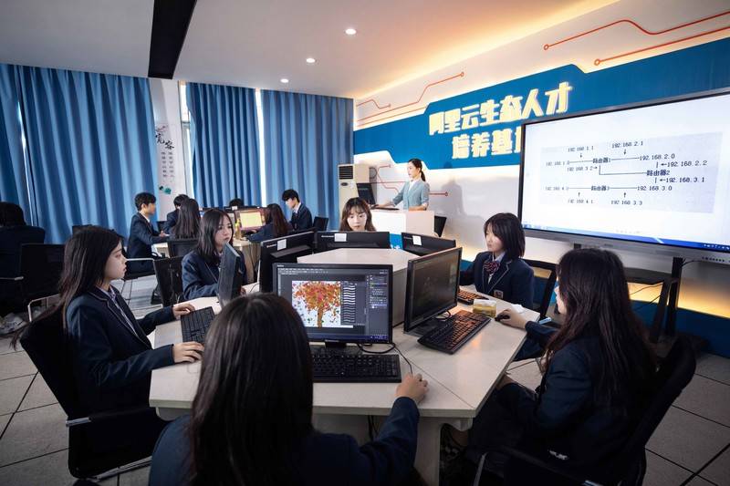 新华更与企业携手推进人才的素质培养,开展“1+X”证书培训,建设“职业素养训练、校内第二课堂、创新创业平台”三位一体育人体系。坚持以学生为中心、以“双高”人才为成果导向,构建包含师生获得感、学习满意度、企业满意度、社会美誉度等指标在内的多元评价体系。