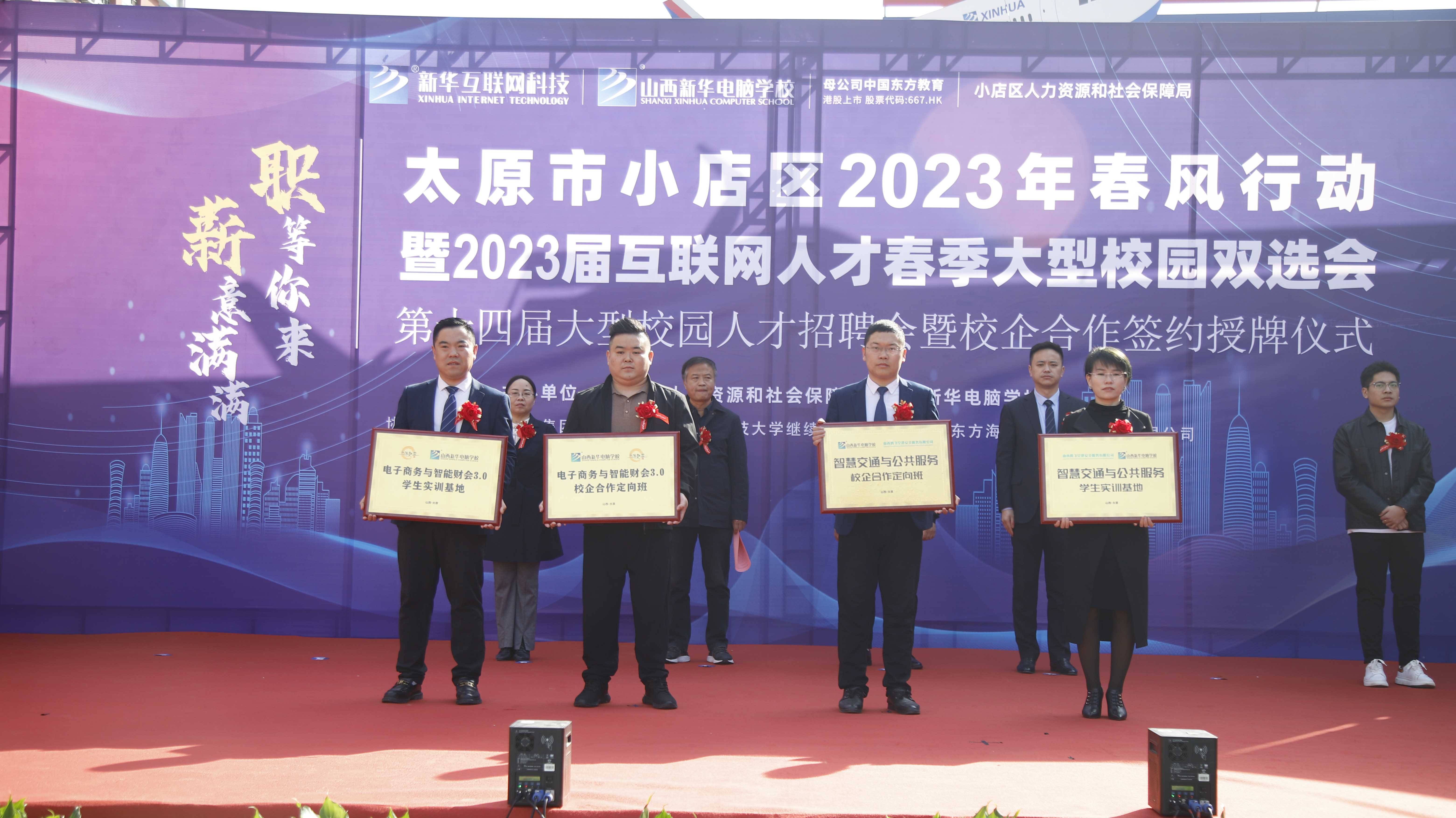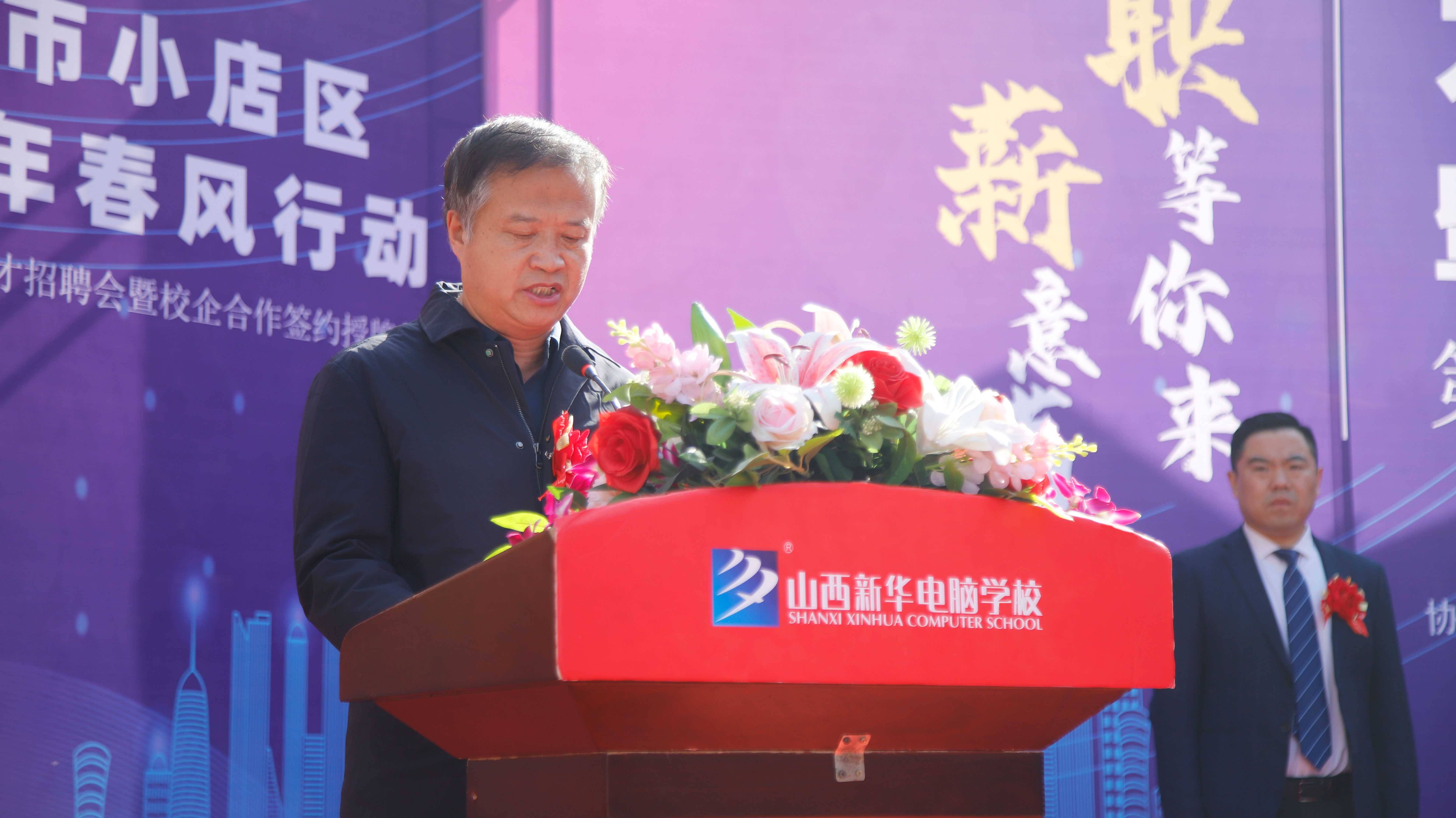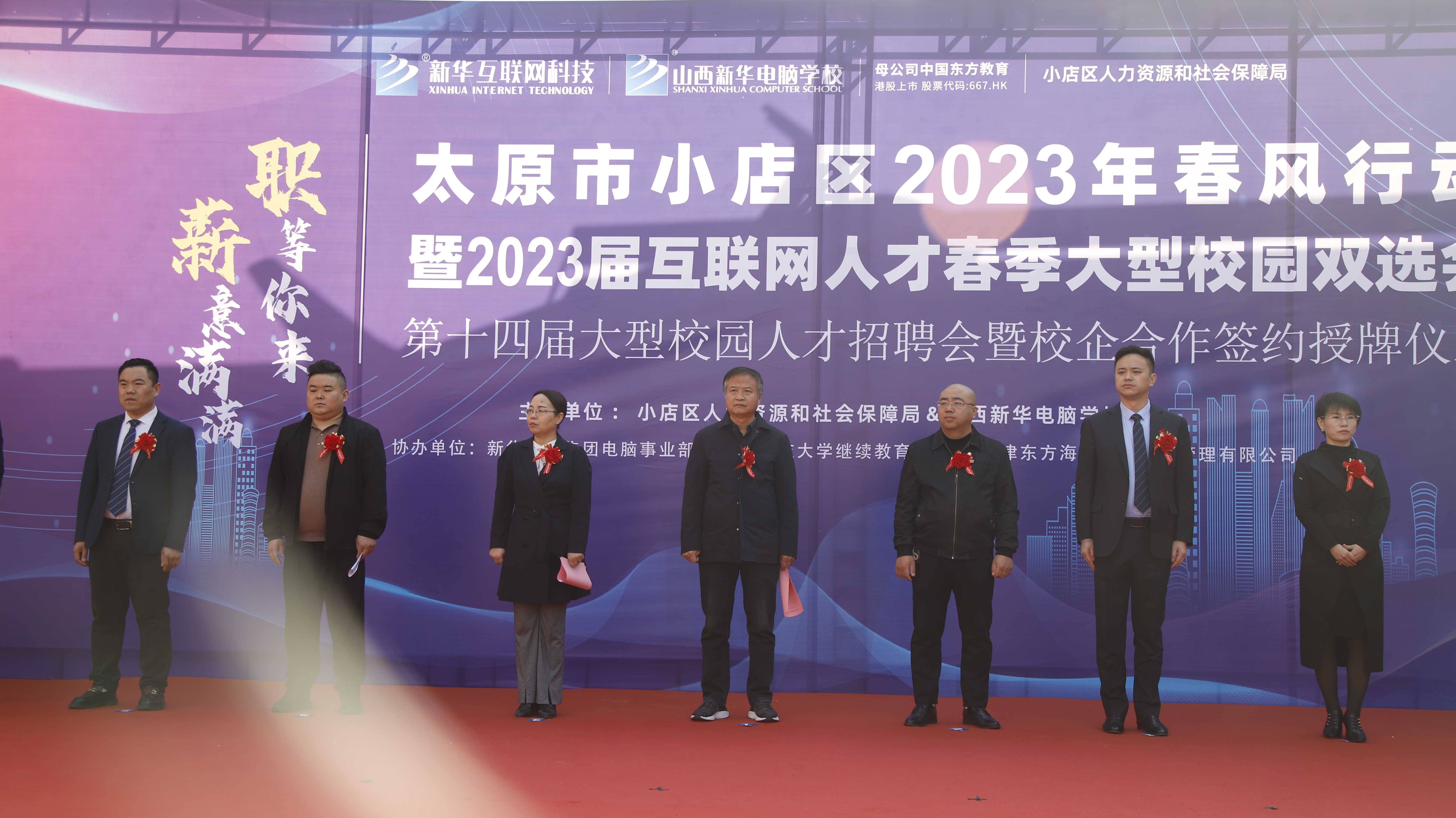 为全面贯彻落实党的二十大精神和党中央、国务院关于稳就业的决策部署,深化落实全国职教大会和省职业教育大会精神,继续推进2023年山西省“春风行动”招聘季活动,切实推动2023届毕业生实现更高质量就业工作,也为我校学生打通升学通道的“较后一步”。2023年3月10日,太原市小店区人力资源和社会保障局联合山西新华电脑学校举办的“暖民心,促就业”2023年产教联盟互联网人才预定会暨2023单招升学咨询会在山西新华电脑学校隆重举行。
