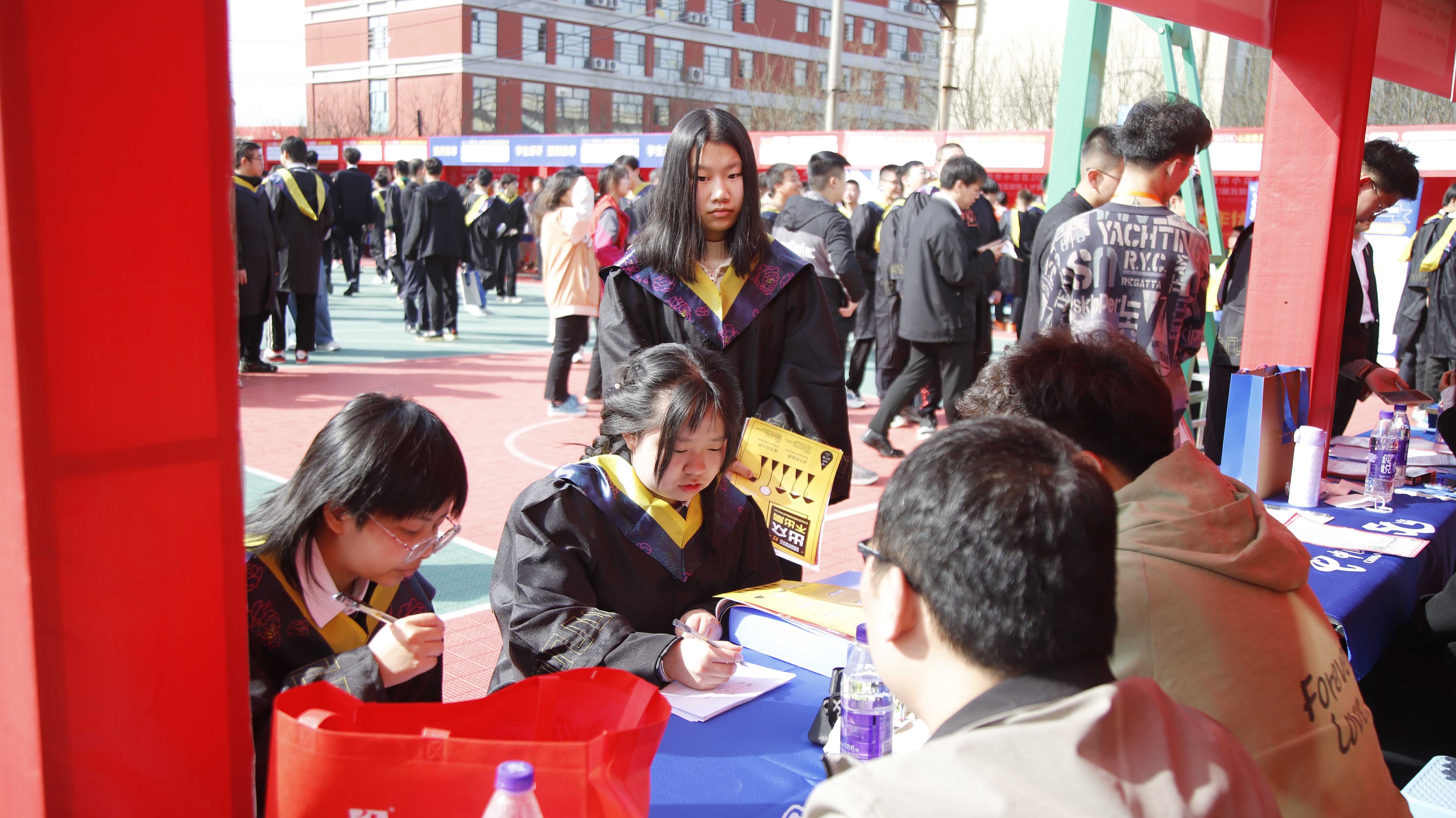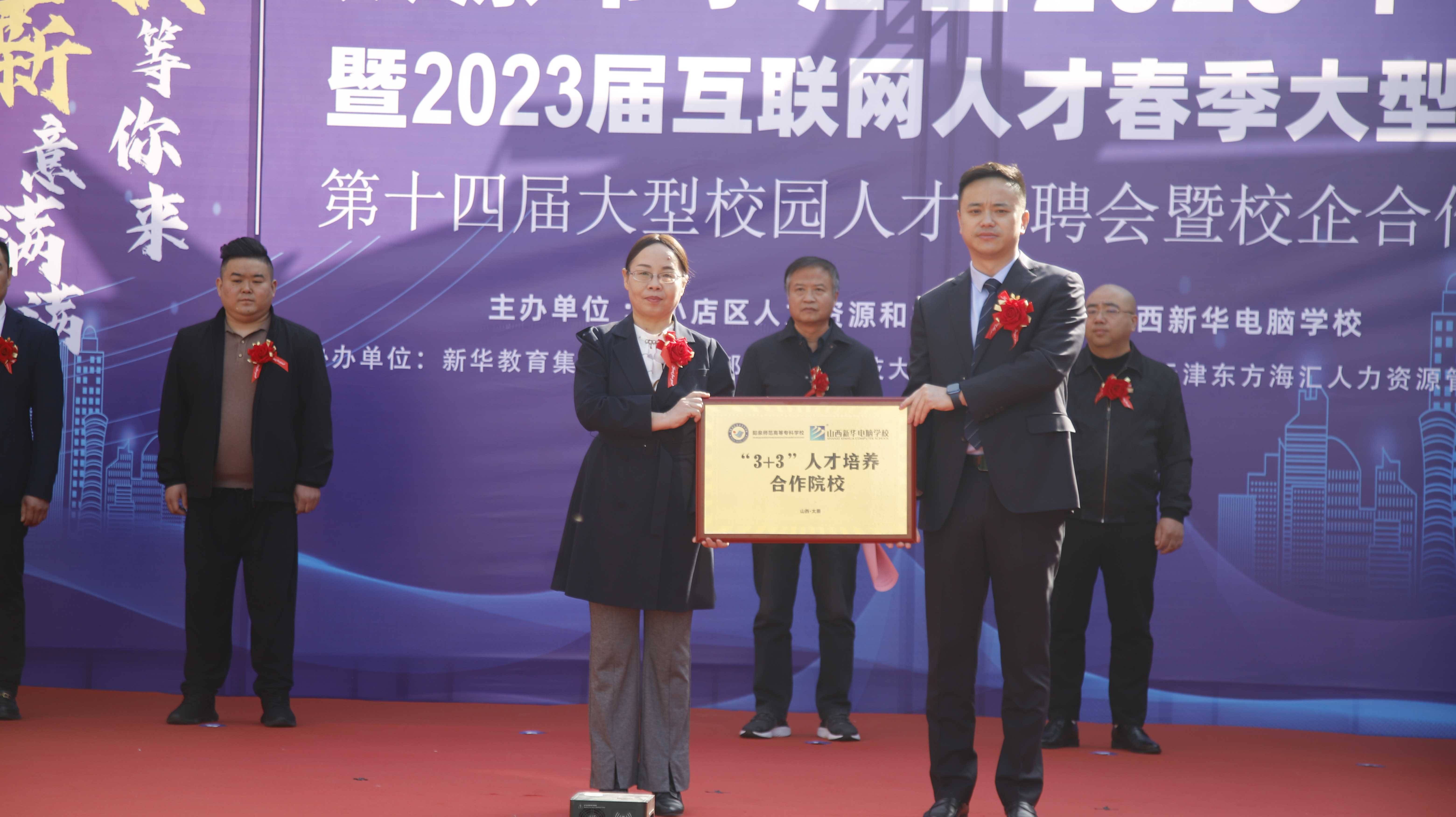 在双选会启动仪式上除了有众多企业外,也有众多高职院校来到现场和我校进行签约,为我校毕业学子升学提供保障,其中,喜阳泉师范高等专科学校与山西新华电脑学校正式达成3+3人才培养合作协议;山东巨唐信息科技有限公司、山西腾飞空港安全服务有限公司分别与我校签订校企合作协议;山西腾飞空港安全服务有限公司向我校赠予校企合作助学金 50 万元。