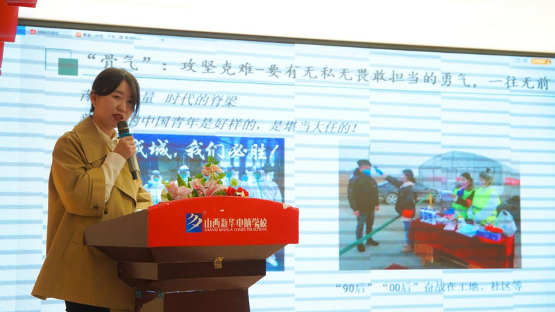 2023年4月19日上午,共青团太原市委青年讲师团李润苑老师和骆婷老师走进山西新华电脑学校进行宣讲。