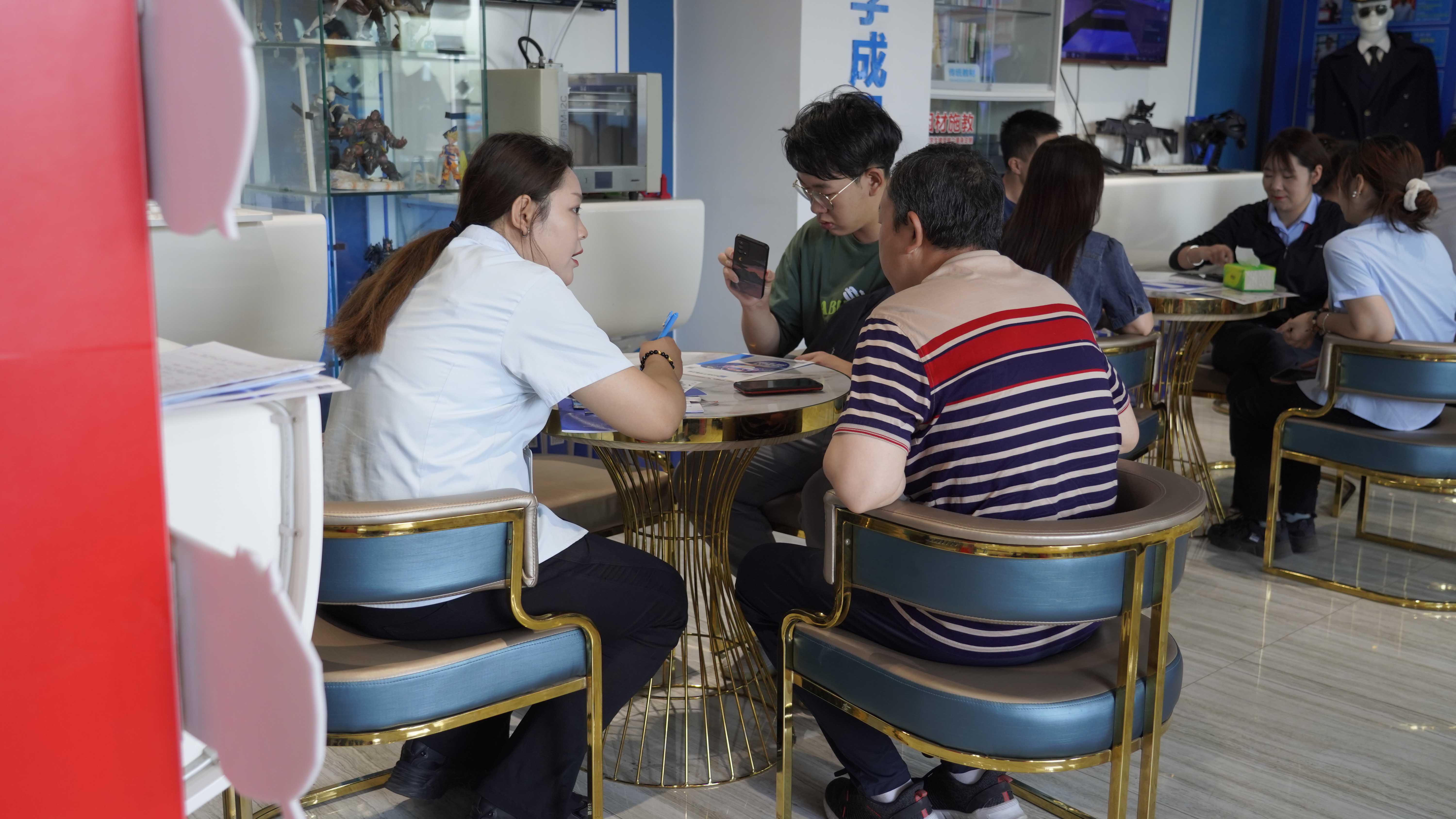 在咨询大厅现场,前来报名家长们的询问声和老师们的讲解声不断,场面甚是火爆。家长、学生仔细的提问,专家老师耐心解答。电子竞技、影视动漫、环艺设计、直播电商、人工智能、5G网络安全、幼师、乘务、美妆、智能工业机器人等,全方位解读热门专业前景,让学生明确未来的职业方向,选到较适合的专业。同时更有专业老师,面对面现场解读,为学子们提供适合的专业!