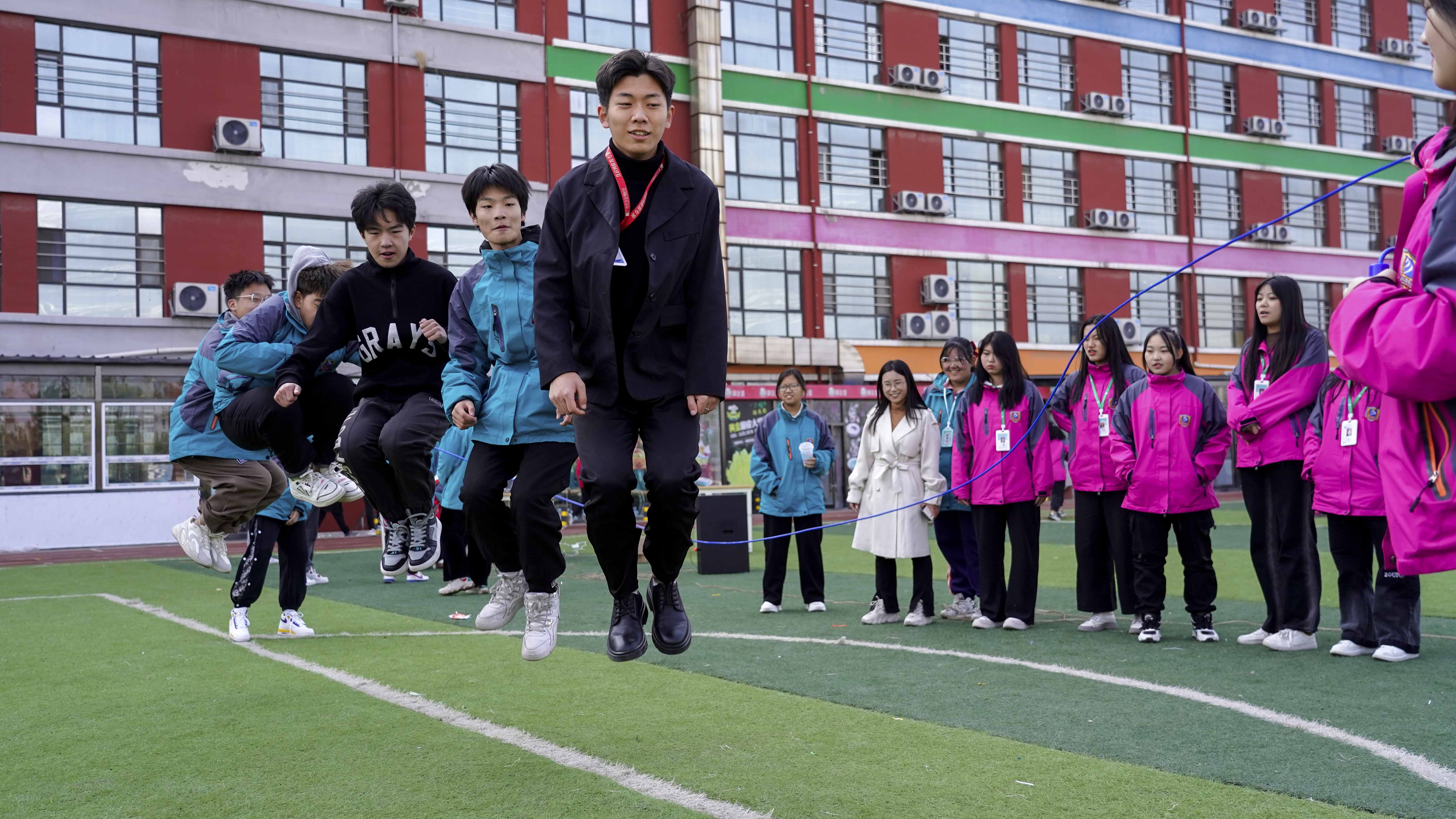 首先进行的是比赛项目是跳大绳,这是趣味运动会不可或缺的项目之一。同学们七人一组,默契的起跳,一次次在大绳中穿梭,有的同学一跃而过,有的同学则错过节拍,每次必错。