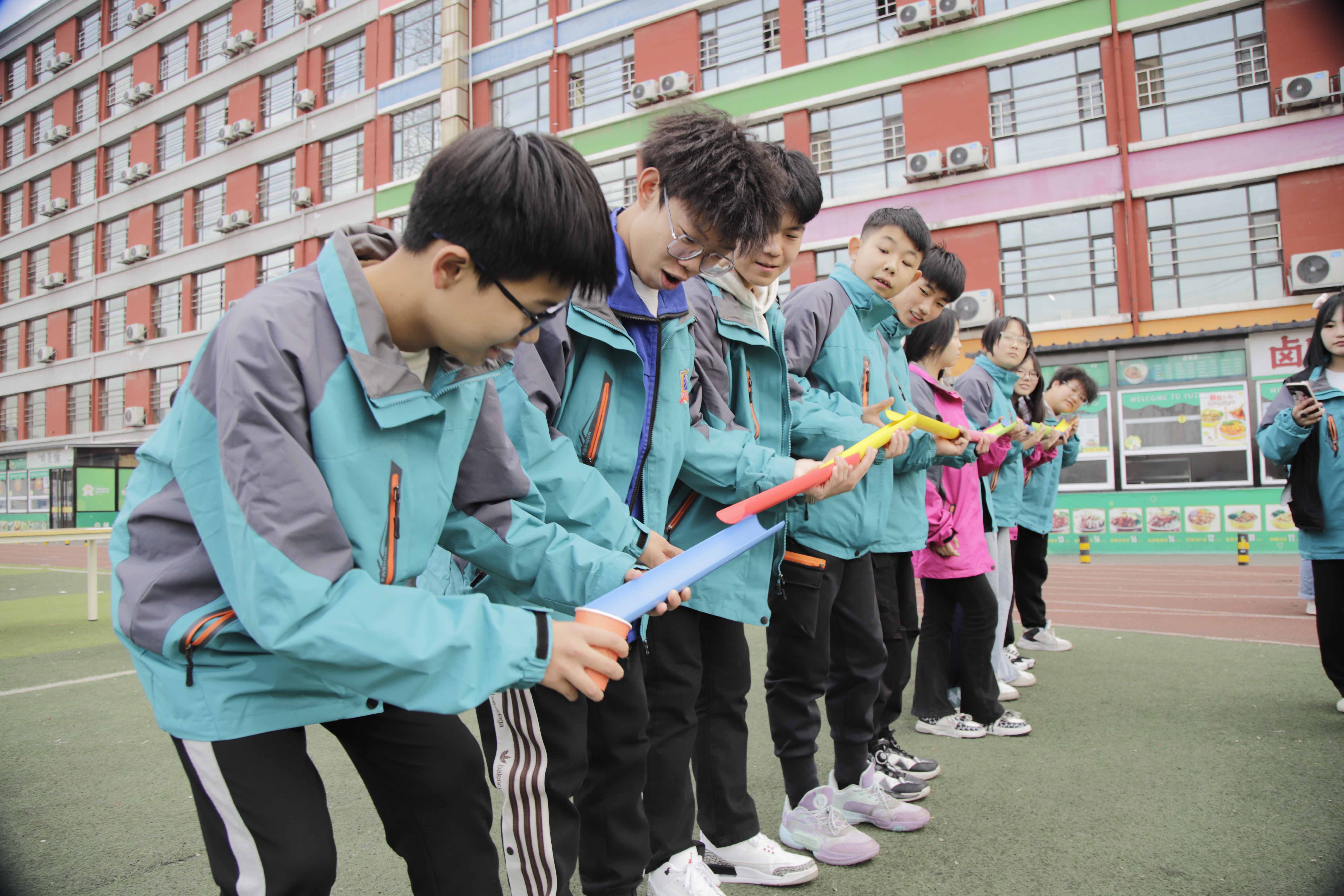 旱地龙舟是趣味运动会中较具特色和挑战性的项目了。同学们抬起龙舟,奋力奔向终点,考验同学们身体力量的同时,也锻炼了同学们的团队合作精神。场边的同学也为参赛者们的卖力表现欢呼鼓劲,让整个运动会达到了高潮。