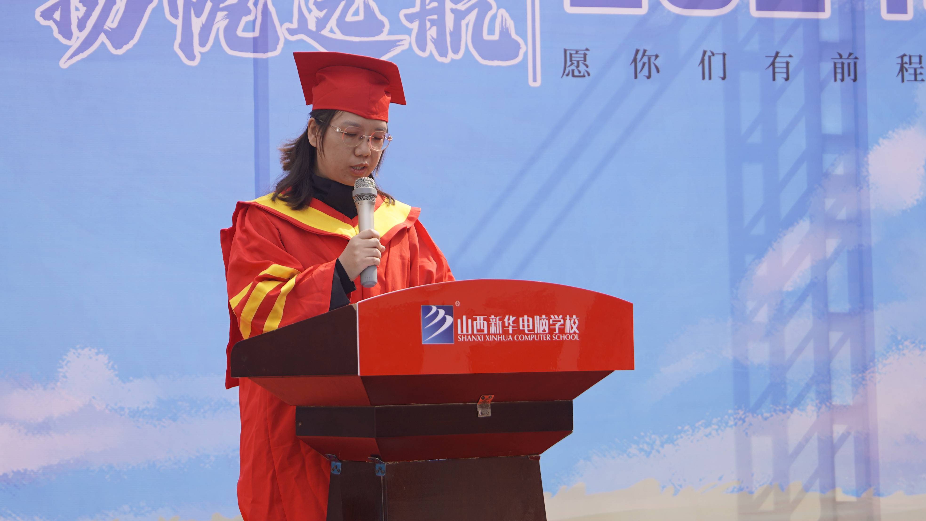 校领导在致辞中表示,新华的毕业生是时代发展的见证者,也是信息技术及网络时代的开拓者,他们在校期间以扎实的专业知识、卓越的实践能力,展现了新华学子的风采。校领导还寄语全体毕业生,希望他们毕业后能够乘着新时代的东风,破浪前行,在各自的领域开创一片属于自己的辉煌。
