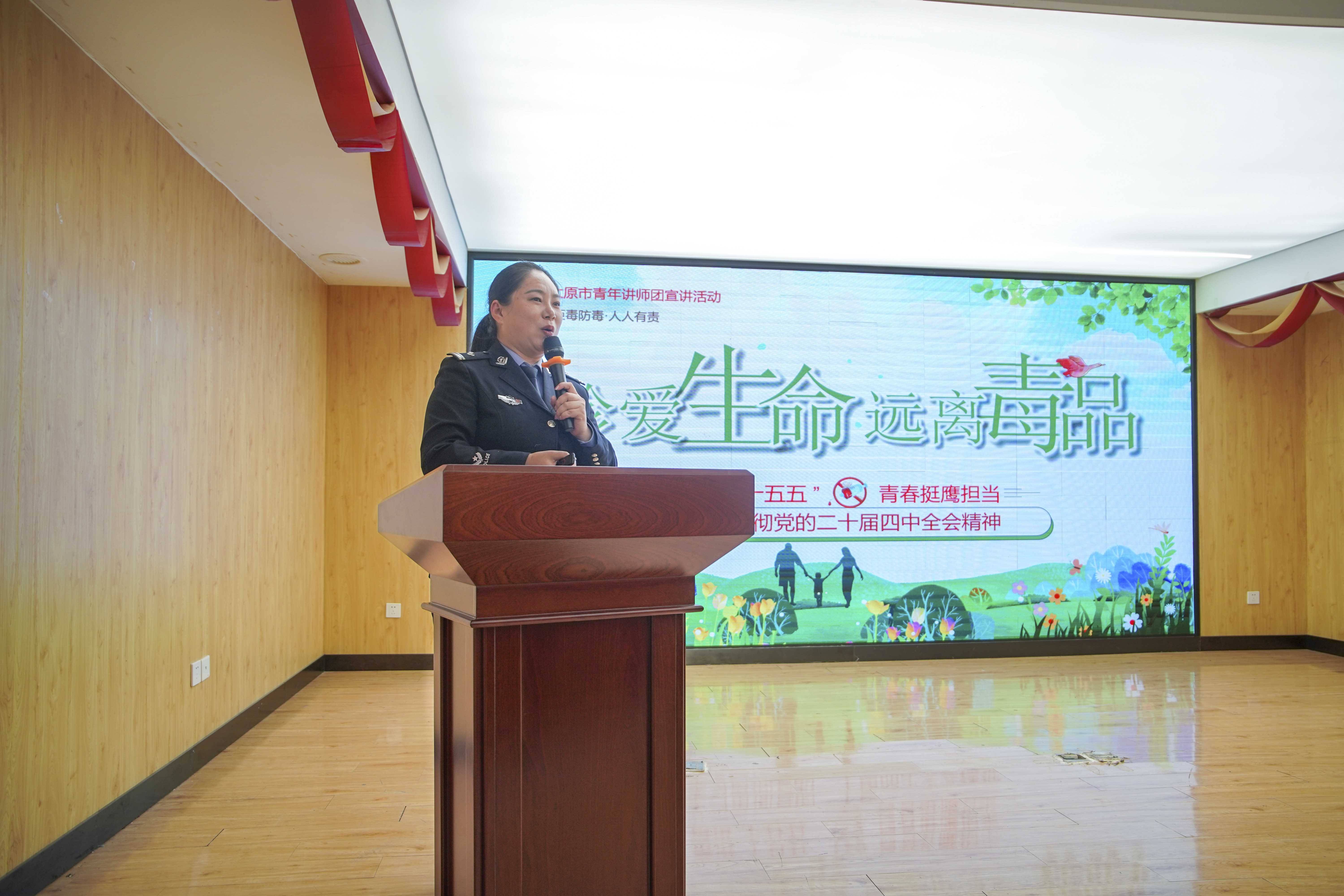 “毒品是青春的陷阱,是人生的枷锁,远离毒品是对自己、对家庭、对社会的责任!” 在 “珍爱生命、远离毒品” 模块,讲师团成员结合真实案例,详细介绍了毒品的种类、危害及识别方法。从新型毒品的伪装形式到禁毒法律法规的相关规定,从个人防护技巧到社会共治责任,讲师用通俗易懂的语言层层剖析,让学子们深刻认识到毒品的严重危害。