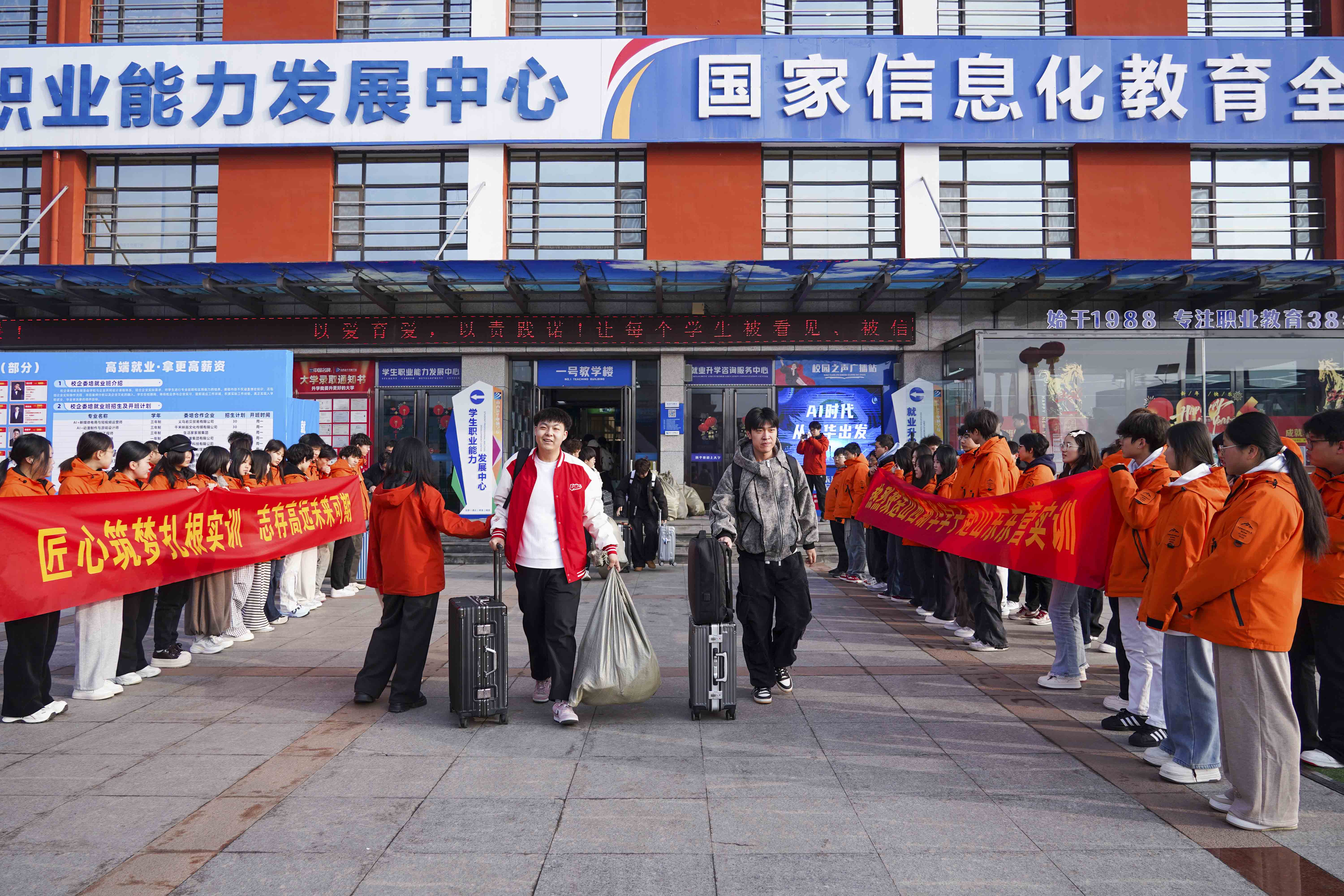 从校园的暖心欢送,到企业的热忱接纳,校企双向护航,不仅让毕业生们感受到了满满的关怀,更彰显了山西新华“以就业为导向”的办学初心。一直以来,山西新华始终深耕互联网职业教育,紧扣行业前沿开设热门专业,将实战教学贯穿始终,让学子们在校就能练就对口硬技能;同时深耕校企合作,与全国数千家优质企业建立长期稳定的人才输送合作,搭建“校企直通”就业桥梁,从入学规划、技能培养到就业推荐、职场跟进,全程为学子保驾护航,真正实现“毕业即就业、上岗即上手”。