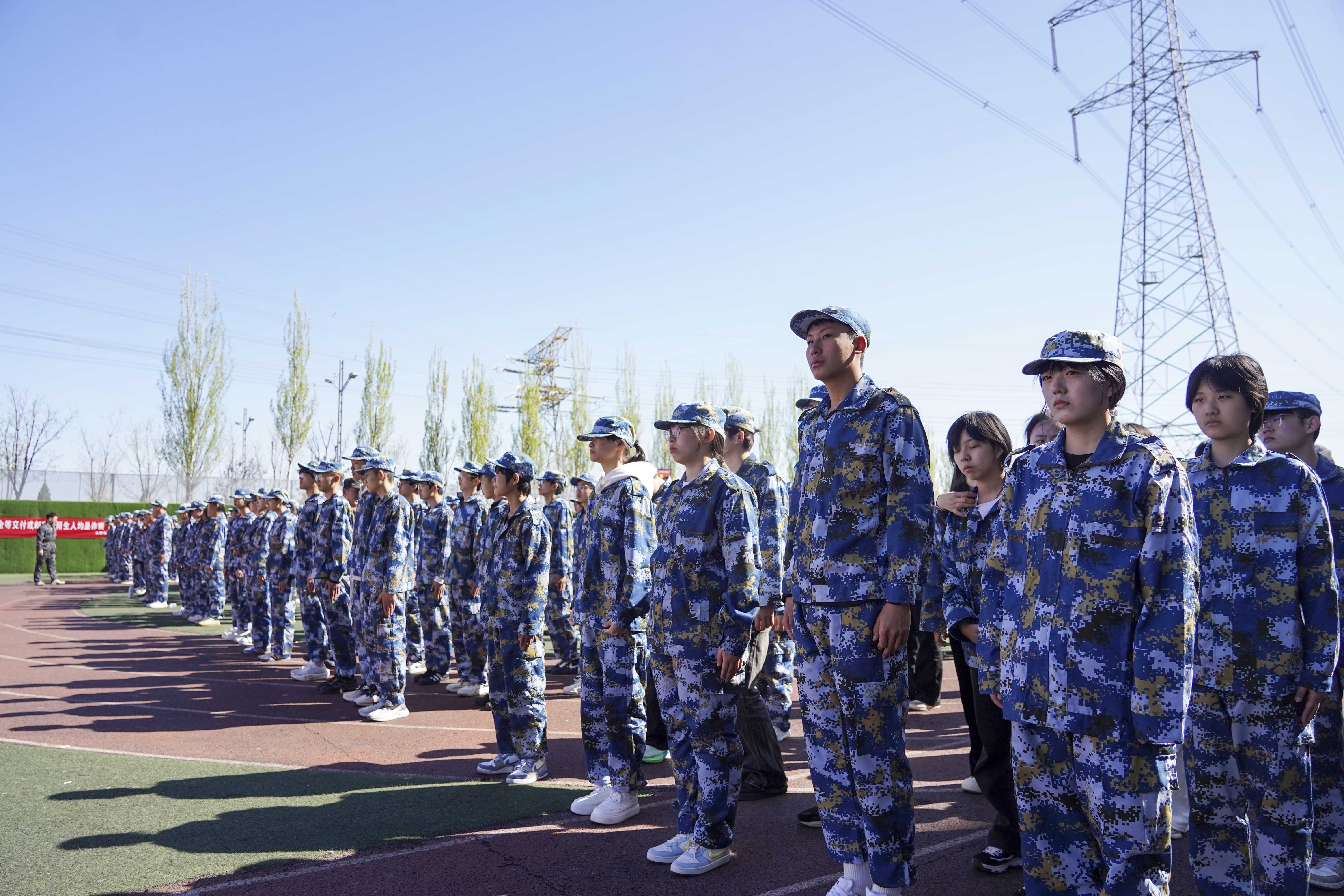 上午9时,开营仪式在庄严的国歌声中拉开帷幕。全体新生身着整齐的迷彩服,精神抖擞,列队肃立。他们将以饱满的热情和昂扬的斗志,迎接为期一周的军事素质拓展训练。