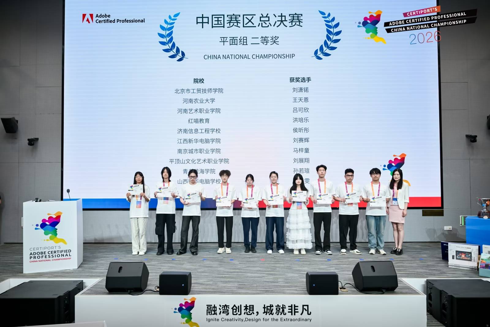 在刚刚结束的Adobe Certified Professional (ACP) 中国赛区总决赛中,我校学子凭借出色的创意与扎实的技能,在众多选手中脱颖而出,斩获佳绩!让我们共同分享这份喜悦与荣耀!